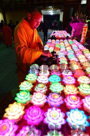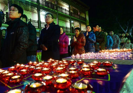 2014年1月1日(农历腊月初一),广西柳州市柳城县凤山开山寺举办迎新年庆元旦传灯法会,广大善信一同前来传灯祈福,祝愿和平安康。(图:邓克轶)