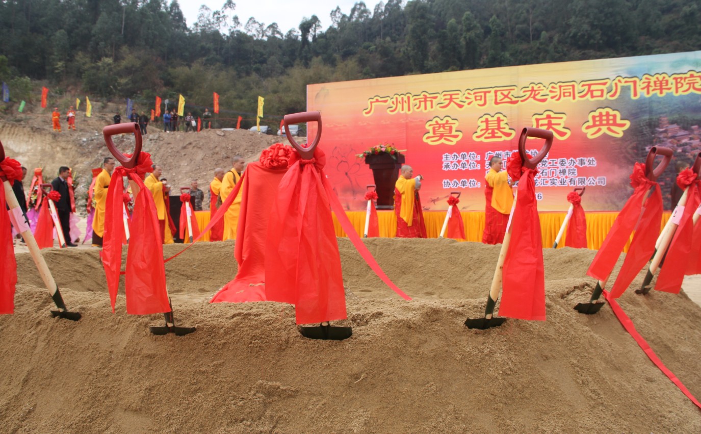 为进一步满足信教群众过宗教生活的需求,弘扬佛教优秀文化,石门禅寺于2014年1月26日上午10:30在石门禅寺隆重举行“广州市天河区龙洞石门禅院奠基庆典”,并邀请长期以来关心和支持石门禅院开放和发展的领导、嘉宾和高僧大德共约500多人出席。