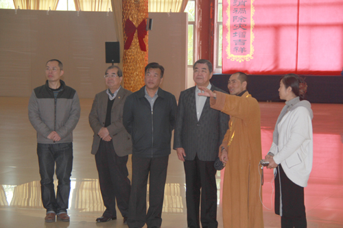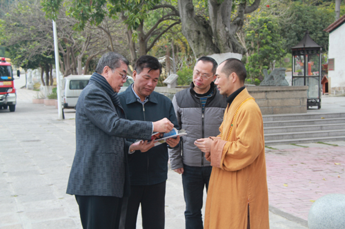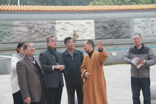 2014年1月15日上午11时,台湾慈济慈善事业基金会荣董总召、拓凯实业董事长沈文振,厦门市台商协会常务副会长兼秘书长沈辉雄一行在海沧台商投资区管委会副主任、常务副区长吴顺彬,海沧区台办主任张绍华,区民宗局局长李江平等相关领导引荐下,到石室禅院参访交流。厦门市佛协副会长、区佛协会长、石室禅院住持忠明法师在护法殿前热情接待了贵宾与领导一行。