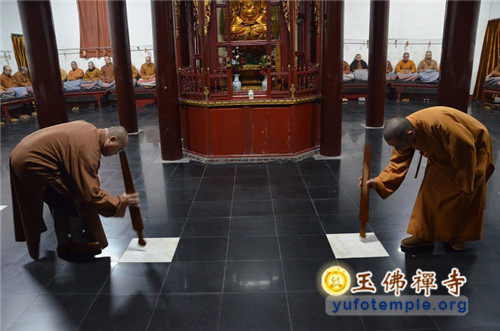 即日下午晚课结束后,所有法师云集般若丈室,向方丈觉醒大和尚告生死假。开始玉佛禅寺一年一度的禅七。
