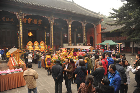 四川成都文殊院喜迎2014年 数万信众“回家”过新年