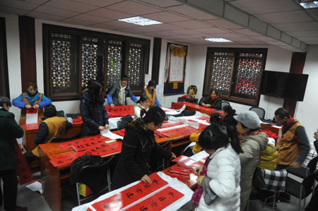 寺院向来是民众祈福的首选场所,更是大家的心灵家园。一位2012年在文殊院皈依的张居士一边卷着春联一边告诉记者,连续两年元旦,他都带上家人来寺里进香、礼佛、供灯、做义工,他觉得来寺院就是“回家”,过节要在家里过。