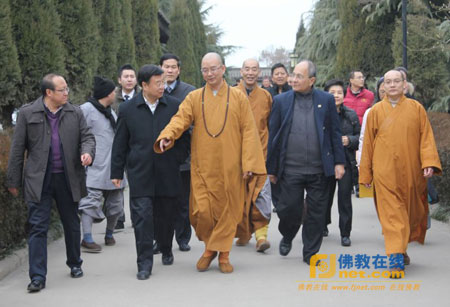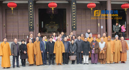 国宗局、中佛协、陕西省宗教局、宝鸡市政府领导和“世佛联”秘书长合影