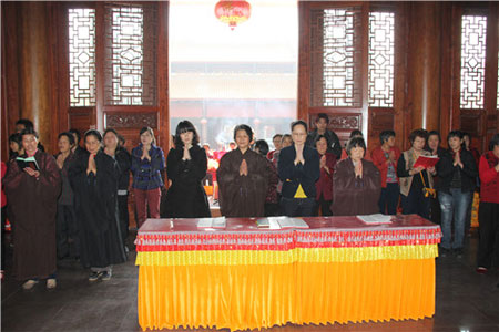 1月9日上午,厦门市佛协副秘书长、同安佛协常务副会长、梵天禅寺住持仁慈法师为善信授三皈依戒,约100名信众参加。