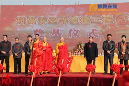 古寺重光人天喜,法幢高悬利众生;经江苏省如东县栟茶镇寿圣寺筹备组委员会多年的努力,寿圣寺复建奠基暨洒净祈福仪式于2014年1月2日上午9时在原址举行。