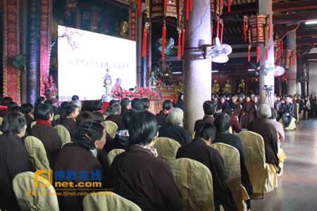 2014年1月5日下午2时30分,“祥和盛世·圆梦潮州”2014年潮州佛教文化节之《佛法与人生》讲座在开元寺大雄宝殿隆重举行。此次讲座由潮州市佛教协会会长、岭东佛学院院长、潮州开元寺方丈达诠法师主讲,开元寺僧众、护法居士以及各地慕名而来的信教群众约200多人参加了讲座。