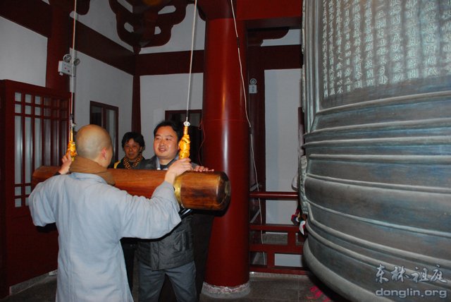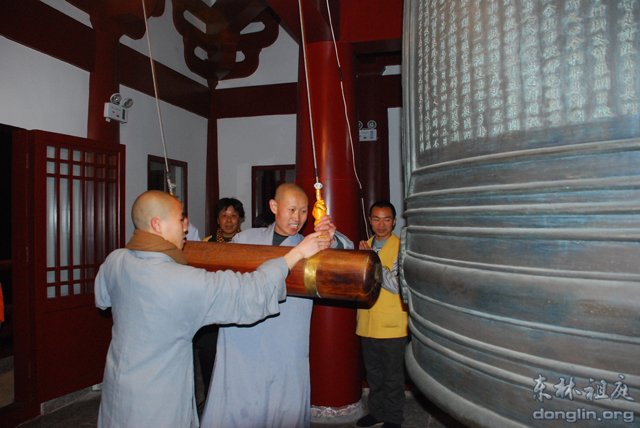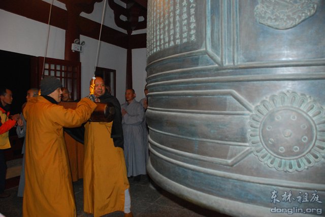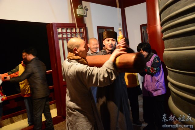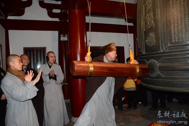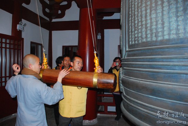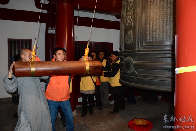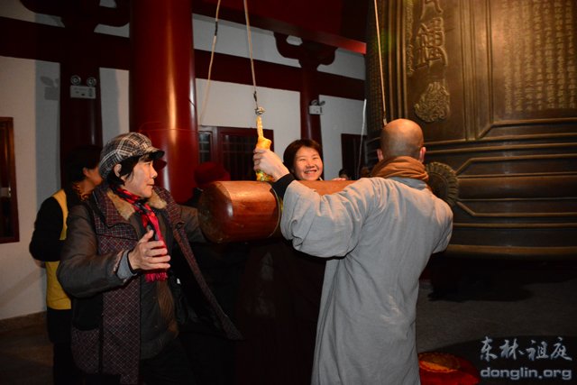 师父们撞完 接着居士依序有条不紊地撞响新年钟