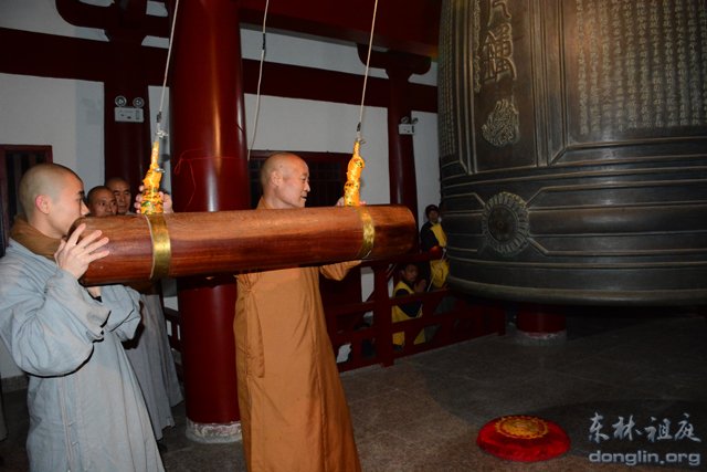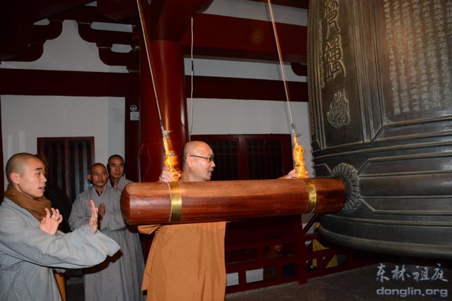 随着佛教东来、道场兴起,钟就在寺院里扮演着重要的角色。《敲钟偈》曰:“闻钟声,烦恼轻;智慧长,菩提生;离地狱,出火坑;愿成佛,度众生。”又因佛教以数字 “108”代表无量之意,为超度幽冥界的苦难众生,寺院早晚各敲钟108下;在新年来临之际,为祈福求吉祥,也会撞钟108下。由此,新年撞钟成为寺院里的一项传统法事活动。