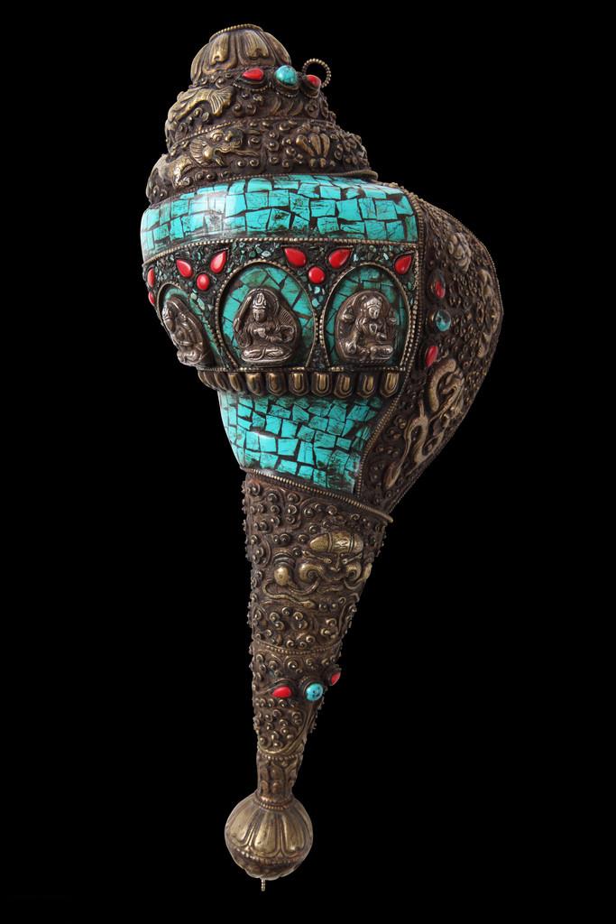 法螺(梵文 dharma-sankha)为藏传佛教常用的法器。译为商、珂贝,又称为法赢、宝螺、金刚螺、蠡、蠡贝、螺贝等。乐器之一种,在卷贝的尾端装上笛子而成。