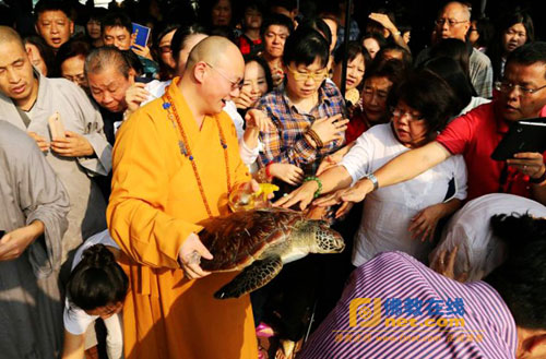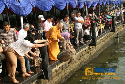 下午,海涛法师、传喜法师在Pantai Mutiara 海边主持了慈悲放生活动,并举行了药师烟供暨慈悲甘露施食超荐法会。三车的虱目鱼,另外还有居士们发心,抢救的十只海龟,这些待放生的物命在海涛法师、传喜法师慈悲加持、三皈依后,让它们重获自由、回归大海。