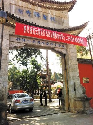 2月10日,鸡足山祝圣寺大门已经敞开,车辆自由进出,香客往来不止。跨入正门,大雄宝殿前面香火缭绕,毫无异样。但祝圣寺住持、新任鸡足山佛教协会会长宏盛法师并不在寺院。