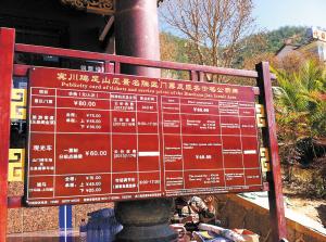 鸡足山大门口,公示栏上的收费标准 (图:赵孟 都市时报)