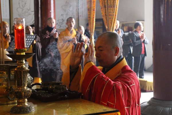 了法大和尚代表能仁寺僧众在弥勒菩萨前拈香祈福