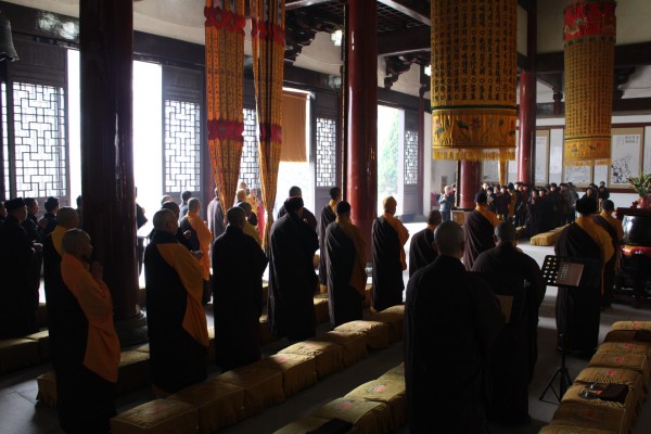 2014年1月31日(农历正月初一),浙江省温州市雁荡山能仁寺,为纪念弥勒菩萨圣诞和农历新年隆重举行上供法会。法会由雁荡山能仁寺方丈了法大和尚主法,能仁寺僧众、护法居士等共同参加了法会。上午10时20分,上供法会在维那师的嘹亮梵音带动下正式开始,了法大和尚主法拈香,率领僧众以香花果品,梵呗雅韵供养十方诸佛菩萨,并将此诸功德,悉皆回向法界一切有情,共同祈愿世界和平、国泰民安、风调雨顺;人民六时吉祥、吉祥如意;祈佑道场兴盛、海众安和。