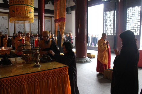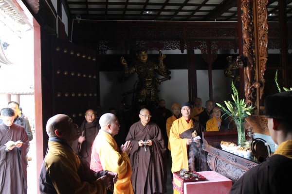 了法大和尚领众前往天王殿韦陀菩萨前上供