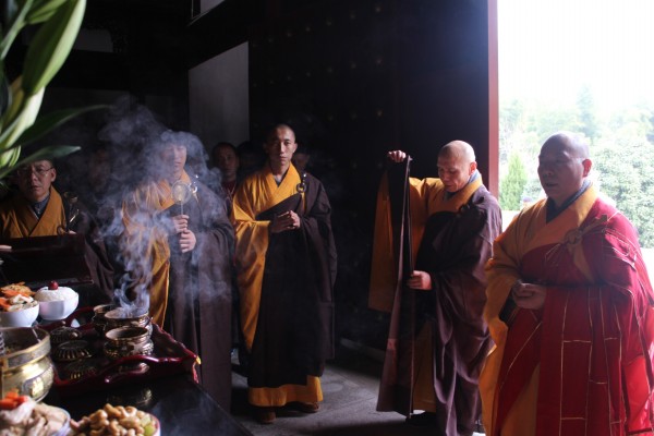 雁荡山能仁寺方丈了法大和尚亲自领众熏修