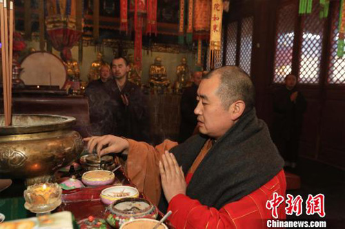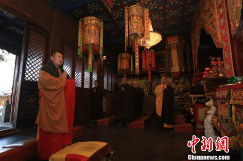 2014年1月30日,山西五台山黛螺顶普供法会迎新春。