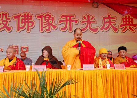 湖口县佛教协会会长、法官禅寺住持真空法师致答谢辞,他讲道:“今天是法官禅寺天王殿佛像开光庆典的大好日子,感恩各位的厚爱与支持,不辞辛劳于百忙之中莅临庆典仪式,让我感到万分荣幸,法喜充满。在此,我谨代表湖口县佛教协会和法官禅寺两序大众对诸山长老、诸位领导、嘉宾朋友和护法善信的到来,表示最热烈的问候和最诚挚的谢意,为此,更要感谢恩师对我的栽培和厚爱。我自2008年九月二十六日出任法官禅寺住持,才疏学浅,力不从心。2009年二月法官禅寺动工修建以来,兴建道场,承蒙各级领导的高度关心,以及十方信士的虔诚护持,历经数年,克服艰辛,本人将谨记纯一长老和各级领导的教诲及率领法官禅寺两序大众,同心同德,学修并重,以戒为师,严守律仪。高举“爱国爱教”旗帜,秉承祖师大德之宗风,发扬佛教优良传统,阐扬“人间净土”理念,庄严国土,利乐有情。充分发挥桥梁纽带作用,团结广大信众,为常熟经济发展,和谐社会建设做出积极贡献。最后,让我再一次向前来参加今天庆典活动的诸山长老,大德法师,各位领导,社会各界朋友们,一贯以来支持法官禅寺建设的所有热心人士表示深深的谢意。”