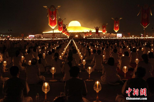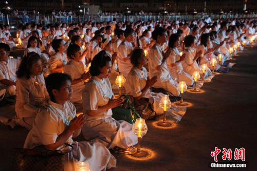 泰法身寺举行万佛节平安灯法会