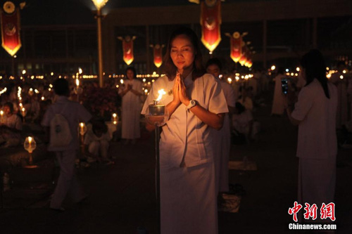 2014年2月14日,泰法身寺举行万佛节平安灯法会。