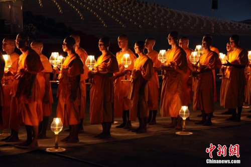 平安灯法会现场点亮近10万盏灯一起供佛