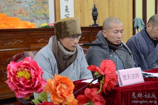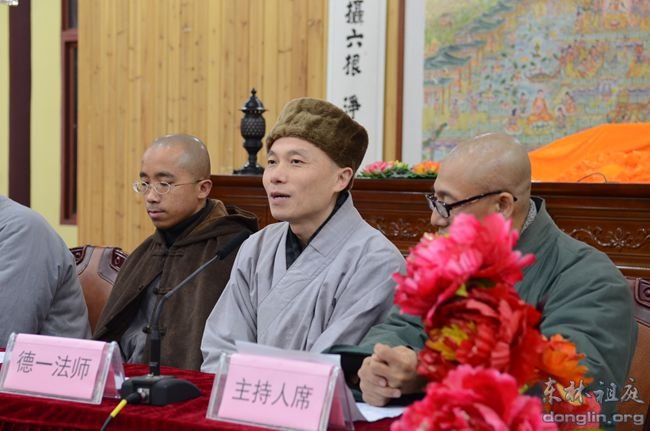 接下来,主持人,又邀请净土苑负责人德一法师为大家开示。德一法师用他读第三届研习班的心得,勉励大家好好发心,精进闻法修行,为东林寺为佛教成就僧才。