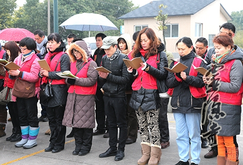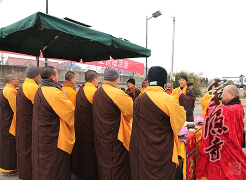 天气预报里说是新年后的第一个雪天,幸赖诸佛菩萨加持、护法龙天随喜护佑,放生仪轨进行到一半的时候,雨雪才逐渐纷纷飘下。义工们主动为唱诵的师父们撑起了护法之伞,遮挡雨雪。风雪中,师父们慈行放生仪轨,居士们发心护持三宝,成了寒冷冬天里最温馨的一景。