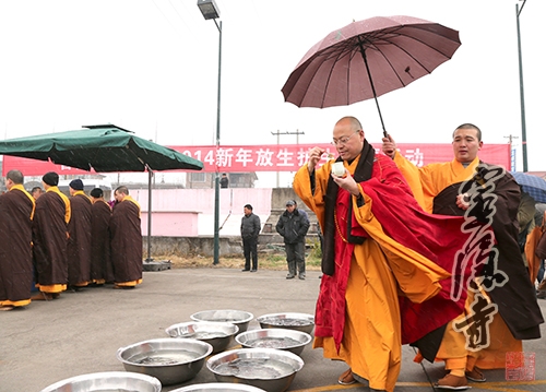 浙江灵隐寺“2014新年放生护生祈福活动”钱江畔举行