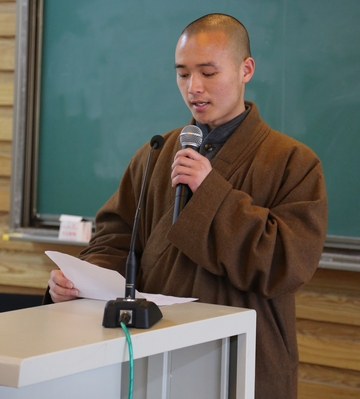 杭州佛学院副院长慧仁法师为毕业生优秀论文获奖者颁发了荣誉证书与奖品