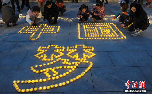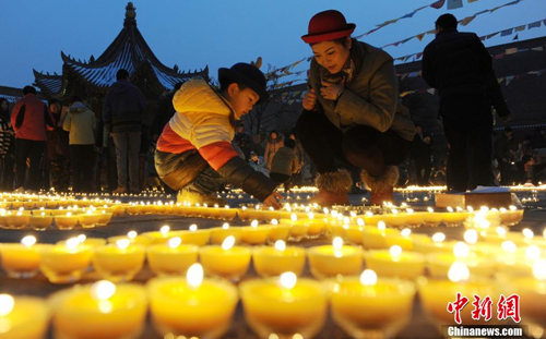 十万酥油灯点亮古城夜 陕西西安民众广仁寺同祈福