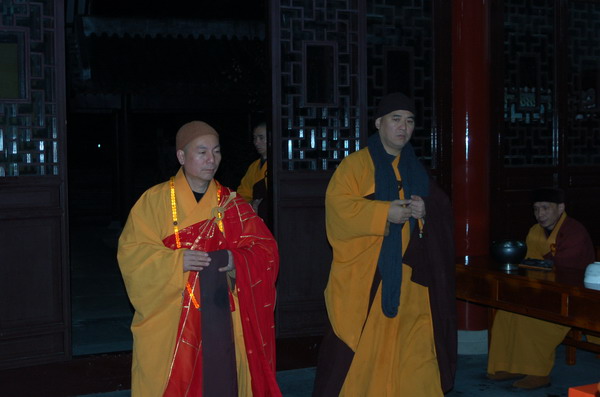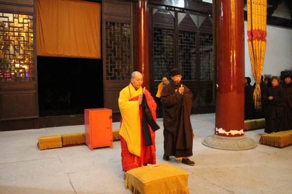 了法大和尚在大雄宝殿为新执事僧送座(部分)