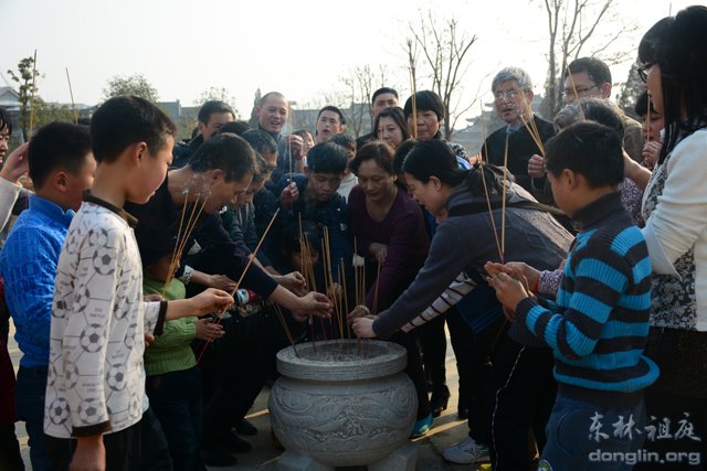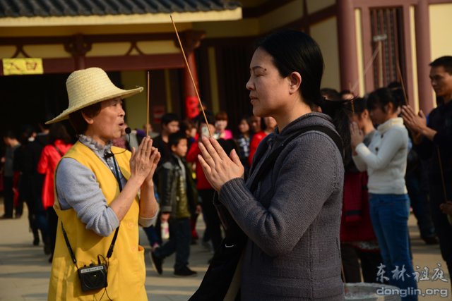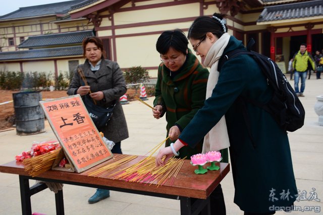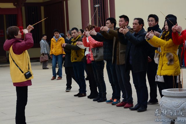 这里有义工居士,教大家标准的上香礼仪,和拜佛礼仪。可要好好学。有的游客感慨不已:“这里真好,别的地方没见过教这些的。”
