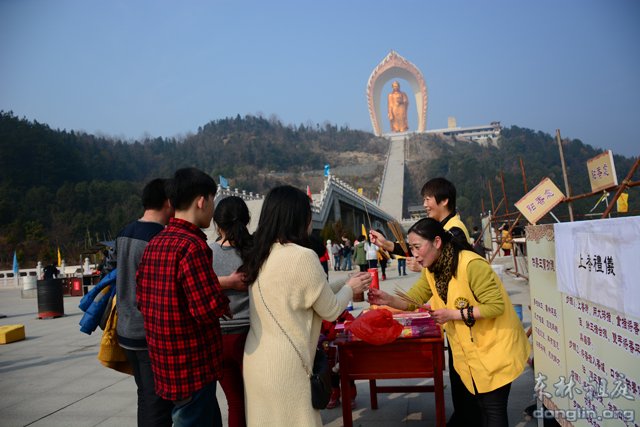 又看见穿黄马甲的义工居士了吧。他们在给信众和游客发香的同时还引导大家念一声“阿弥陀佛”,这样就在我们的心灵中种下了“金刚种子”,在未来的某一天我们会因为这一句佛号的善缘而学佛、成佛。