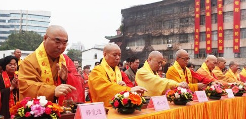 上午九时,仁寿寺经幢高悬、钟磬和鸣。依照佛教仪轨,两序大众、四方佛子信众齐聚寺院至法堂迎请中国佛教协会副会长、广东省佛教协会会长、佛山仁寿寺住持明生大和尚,中国佛教协会副会长、江苏省佛教协会会长心澄大和尚,澳门佛教总会理事长、菩提禅院住持健钊长老,香港佛教联合会执行副会长、香港西方寺住持宽运大和尚,台湾中国佛教会理事、新竹佛教会理事长明空大和尚,广东省佛教协会副会长兼秘书长、广东大佛寺方丈耀智大和尚,广东省佛教协会副会长、广州六榕寺方丈法量大和尚,广东省佛教协会副会长、韶关大觉禅寺方丈明向大和尚,广东省佛教协会副会长、湛江佛教协会会长有生大和尚等诸山长老。