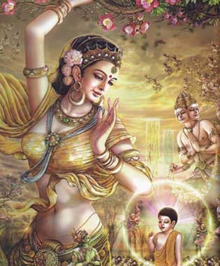 在中印度的一个小城邦,迦毗罗卫国,是由释迦族所建的小国家,离其国都不远处,另有一城,名叫天臂,也属释迦族的一支,城中有一位豪贵的长者,名叫善觉,他的财富之多,无法估计,当时的人,把他看做财神。他一共生了八个女儿,相师们看了这八个女儿的相貌仪容,均说当生富贵福德之子。这消息被迦毗罗卫国的净饭王知道之后,便遣使者前往求婚,结果,迎娶了摩耶及婆阇波提。这两位伟大的女性,是与释迦世尊历劫以来,有过大善因缘的人,她们来到人间,正是为著迎接释迦世尊的降生和抚养成人。