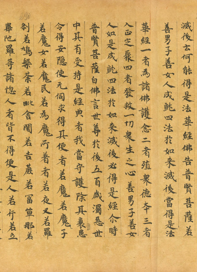 “世尊,我今以神通力故、守护是经,于如来灭后、阎浮提内,广令流布,使不断绝。”
