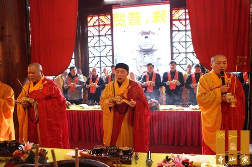 龙天欢喜,祥瑞满地 2014年3月1日上午,苏州寒山寺文殊普贤菩萨圣像开光法会隆重举行。中国佛教协会常务理事、江苏省佛协副会长兼秘书长、寒山寺方丈秋爽大和尚,江苏省佛协副会长、苏州市佛协会长、苏州西园寺方丈普仁大和尚,祥符寺监院普俊法师,张家港市佛协名誉会长秋林大和尚,寒山寺常住僧众,十方善信上百人参加此次法会。