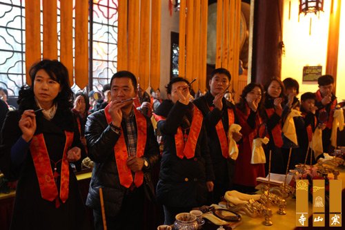 上午9时30分,开光法会在悦耳的梵呗声中拉开序幕。法会礼请秋爽大和尚,普仁大和尚,普俊法师,秋林大和尚共同主法。开光仪式上,众位高僧共同诵经祈福,主法法师拈香、说法,仪轨依次分“用巾拂尘”、“举镜照空”、“朱笔点眼”三个步骤,喻以佛法拂去众生心地上的垢尘,开发其内在智慧,进而遵从佛教道理,化世导俗,去除烦恼,建设和谐。