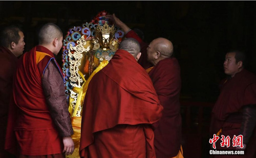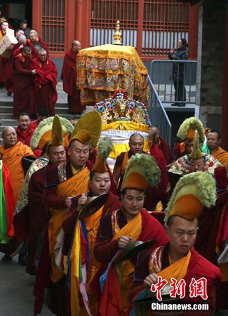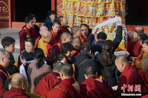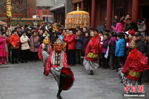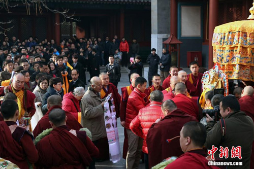 2014年3月1日,北京雍和宫举行祈愿大法会之绕寺仪式。