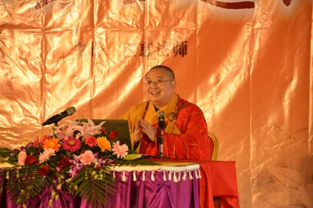 2014年3月16日上午,中国佛教协会副会长、湖北省佛协会长、黄梅五祖寺住持正慈法师在黄石东方山弘化禅寺宣讲了《因果奥秘,幸福舟航——十善业道经》。