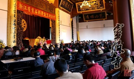 15日下午2时,浙江省首届科学放生研讨会在灵隐寺法堂隆重举行,会议由浙江省佛教协会郑国元秘书长主持。在研讨会上,省小动物保护协会常务副会长朱水林先生演讲了放生与护生的关系、科学放生的意义和护生的方式,杭州市渔政渔港渔船监督管理总站副站长张婉平女士介绍了国家有关增殖放流、科学放生方面的法律法规,提醒大家要依法放生,维护生态环境。