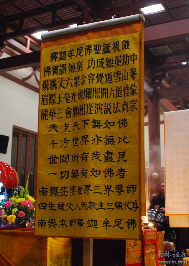 2014年3月7日,即农历二月初七日夜,为纪念本师释迦牟尼佛出家吉日,东林寺净土苑在念佛堂,隆重举行了释迦牟尼佛出家纪念日祝圣法会。法会由净土苑首座悲如法师主法。净土苑常住僧众、管理总部工作人员和护法团义工共一百六十多人,怀着无比欢喜、恭敬之心参加了这一法会。