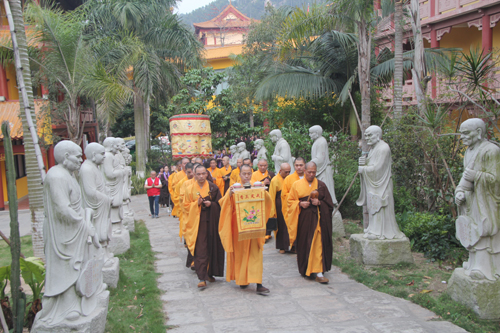 福建厦门石室禅院隆重举行甲午年49天药师佛许愿专修大法会洒净结界仪式