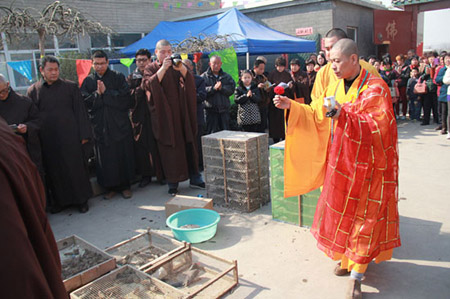 河北高邑县护国金刚寺华严法会放生仪式举行