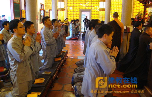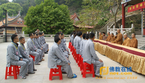 两天时间内,企业家们体验着禅林出家般的生活。每日清晨五点,在群峰回响的晨钟声中,齐聚祖师殿,唱响梵呗,一天的修行从早殿开始。早饭过后,与法师们一起出坡劳动,听佛学院法师讲课,于禅堂打坐静心,参加寺院的晚课,夜暮之中,在雪峰寺常住法师的带领下,于祖师殿前绕行念佛后,聚集在华严殿内向法师请教如何面对生活工作、企业经营与发展、慈善公益事业的推动中所遇到的各种困惑。
