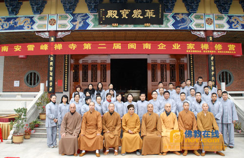 2014年3月15日,福建省泉州“南安雪峰禅寺第二届闽南企业家禅修营”开营,来自全国各地近五十名优秀企业家,齐聚南安雪峰禅寺参加为期两天的禅修营。企业家们在这周末走进丛林,走近出家人的生活,全方位感受佛法广博的智慧与慈悲。南安雪峰禅寺为企业家制定了相关禅修课程,力图通过这些适合现代人生活而又体现佛法精髓的课程,向企业家们以及全社会传播佛法的普世情怀,诠释佛法在改造人类的内心世界,并以此来改造社会所起到的作用。