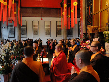 法会现场庄严隆重,并以此法会功德回向世界安宁,风调雨顺,一切有情消除烦恼业障,同沾法益。