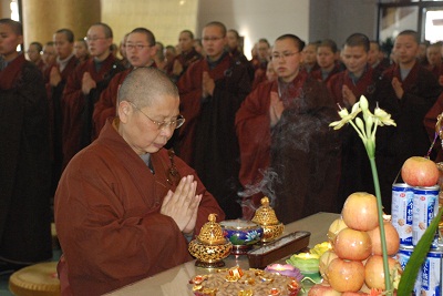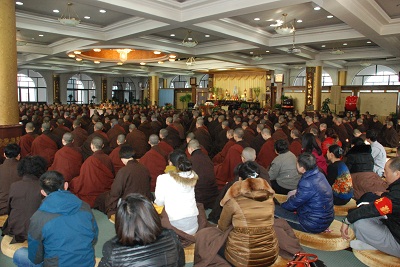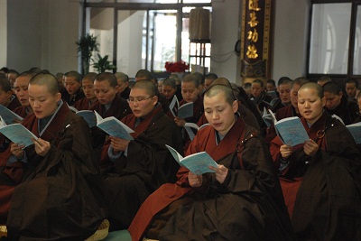 怀着一颗自利利他的菩提心,在清净悦耳的梵呗声中,大众虔诚讽诵《四十二章经》,拜八十八佛忏,以祈世界和平,众生安乐!