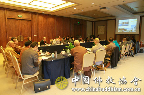 中国佛教协会吴国平副秘书长主持论证会,中国佛教协会王健秘书长向与会专家学者介绍了中国佛学院新校舍项目的背景及项目进展情况。