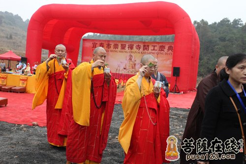 2014年3月19日(农历二月十九日)上午,江西宜春崇圣禅寺梵音嘹亮,彩旗飘扬,来自省内外的四众弟子数百人参与和见证了江西省宜春崇圣禅寺开工庆典。